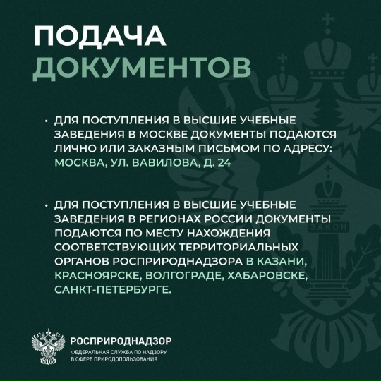 Росприроднадзор объявляет конкурс на целевое обучение с последующим трудоустройством на федеральную государственную гражданскую службу — в центральном аппарате или территориальных органах.Обучение возможно в ведущих вузах Москвы, Санкт-Петербурга, Казани, Красноярска, Волгограда, Хабаровска, Йошкар-Олы, Чебоксар и Норильска.